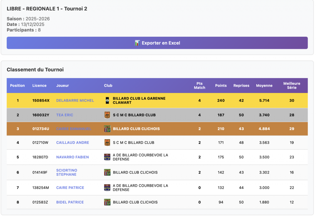 Ce samedi 10 était décidément dédié au jeu à la bande et c’est dans lumineuse contrée de Châtillon que s’est déroulée la confrontation de 12 joueurs pour le deuxième tour qualificatif pour la finale départementale.