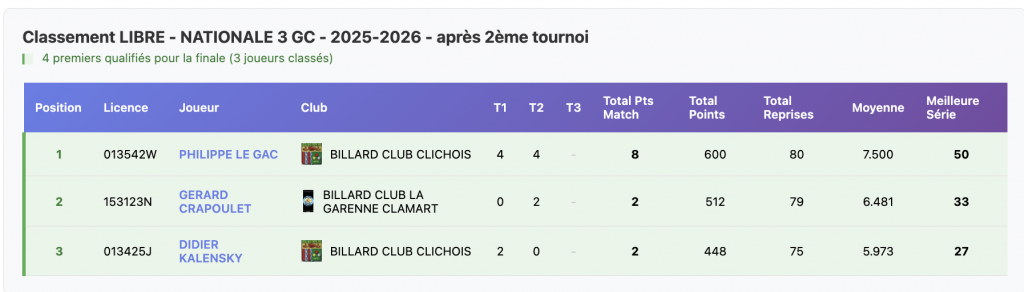 Ce sont les couleurs du club de Clamart que Gérard Crapoulet a fait briller en emportant ce T2 à l’issue de ses 2 victoires complétées par la meilleure moyenne.