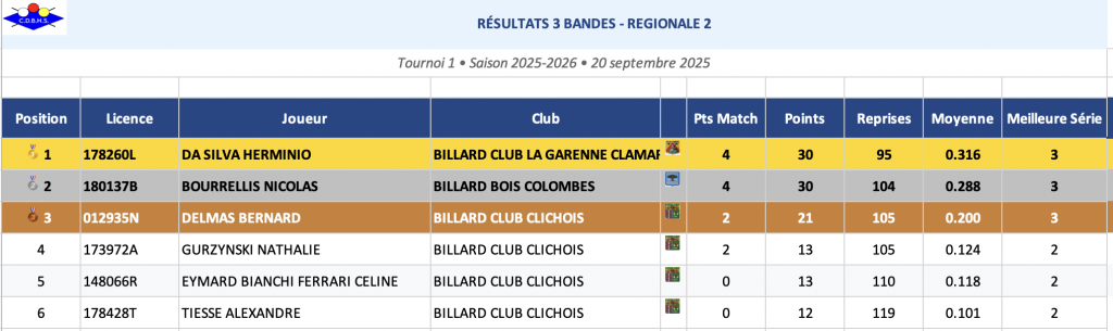 Là aussi c’est la moyenne générale lors du tournoi qui a décidé de ce podium temporaire sur lequel sont aussi montés Alexandre Tiesse et Denis Lesigne, grâce au même nombre de points de match.