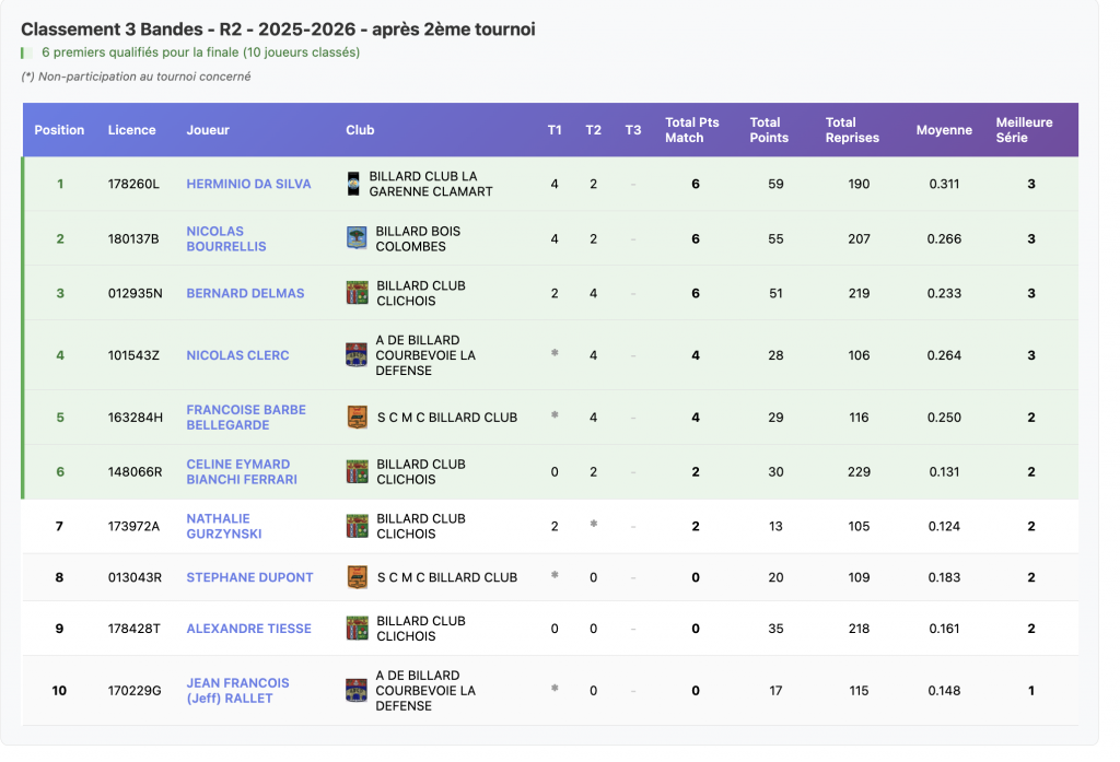 Le club de Châtillon a parfaitement organisé ce deuxième tournoi de la catégorie R2 pour le mode de jeu 3 bandes.
